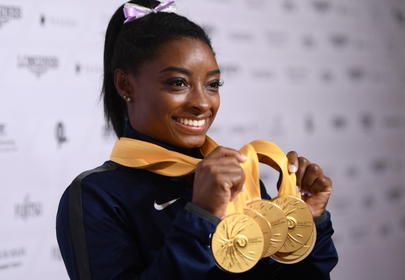 เอเอฟพีรายงานว่า ซีโมน ไบลส์ นักยิมนาสติกสาวทีมชาติสหรัฐ วัย 22 ปี